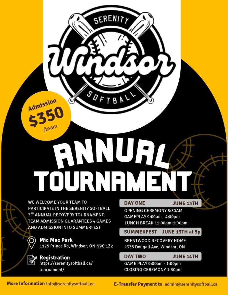 Serenity Windsor Softball + Add to Google Calendar + iCal / Outlook export Date Jun 13 2026 Time 8:30 am - 4:00 pm Location Mic Mac Park 1125 Prince Rd Windsor, ON Organizer More Information Email info@serenitysoftball.ca Share this event